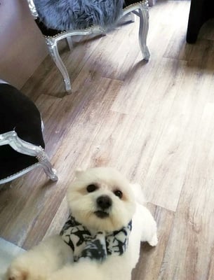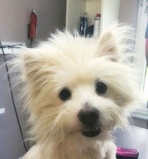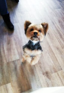 Wenn du mich mit meinem Namen ansprichst oder rufst, während ich auf dem Schertisch stehe, dann muss ich als artiger Hund nachsehen, was der Grund deines Rufens ist. Du kannst dir bestimmt vorstellen, dass sich meine Friseurin nicht besonder freut, wenn ich plötzlich davon flitze. Außerdem kann es auch gefährlich für mich werden, wenn sie gerade dabei ist, meine Augen freizuschneiden. Deshalb bitte erst nach dem Frisieren wieder meine Aufmerksamkeit erregen ;-)